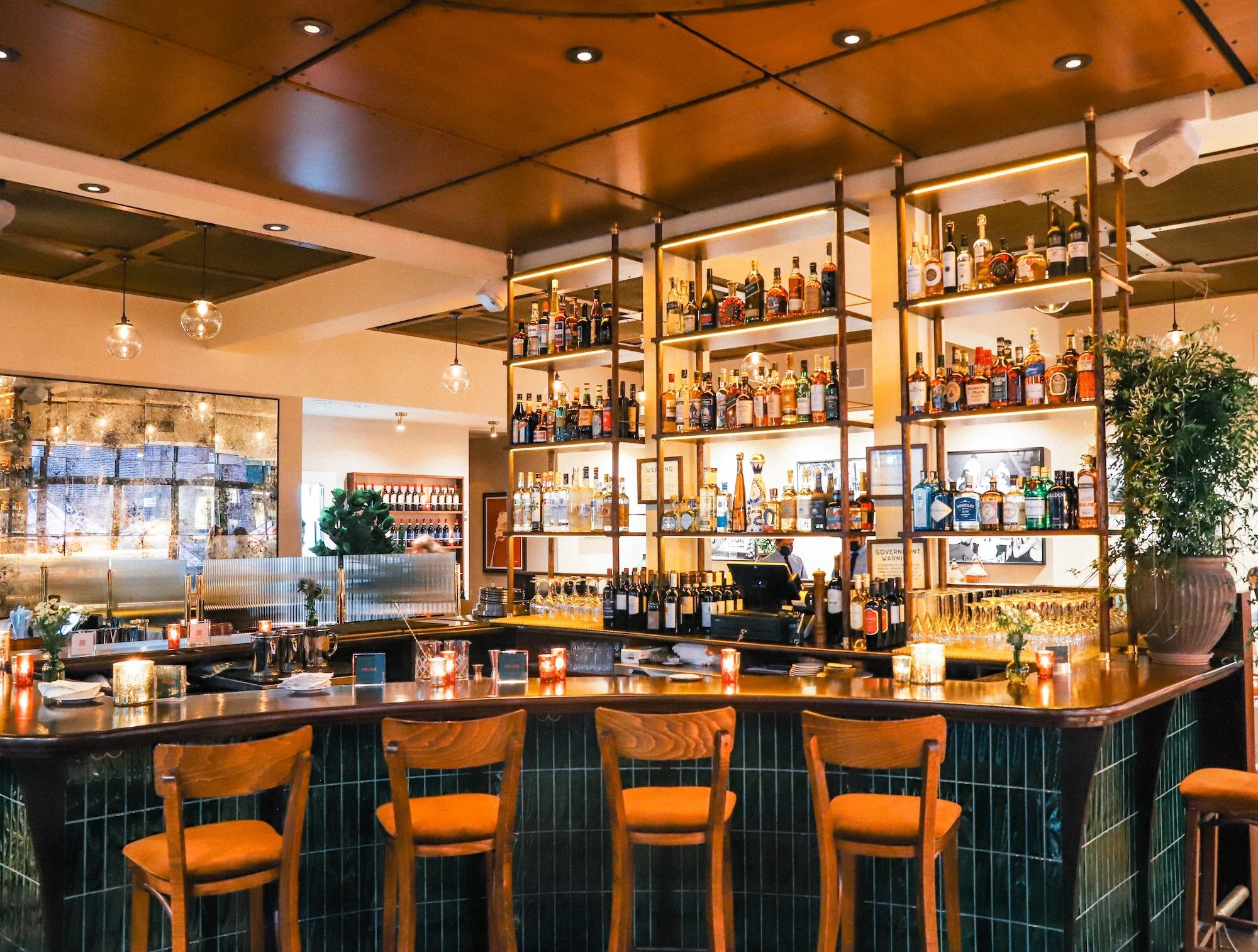Situated in the historic heart of Brooklyn Heights, this iteration of Felice draws inspiration from the rich traditions of Tuscan cuisine and community-oriented hospitality. Housed within a beautifully preserved 1930s art-deco building, the space celebrates its architectural heritage while infusing the interiors with subtle nods to Italian culture and conviviality. Bold geometry and original tile work surrounding the bar informed our design approach, allowing the restaurant to feel both rooted in place and welcoming to gatherings of all kinds.